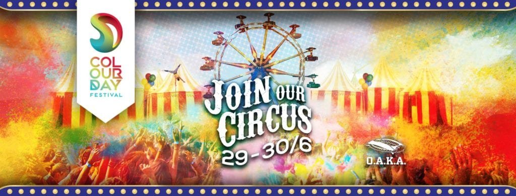 Για πρώτη φορά, το μεγαλύτερο ΔΙΗΜΕΡΟ χρωματιστό φεστιβάλ της Ελλάδας είναι εμπνευσμένο απο το θαυμαστό κόσμο του Τσίρκου!! Μουσική, άφθονο χρώμα, εντυπωσιακά acts γεμάτα μαγεία και μυστήριο, αλλά και… ο super fun χρωματιστός αφρός, που αποτελεί τη φετινή έκπληξη του καλοκαιριού, θα απογειώσουν τη διάθεσή σου!