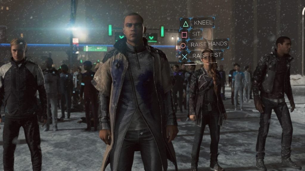 Αναλαμβάνουμε τον ρόλο τριών διαφορετικών ανδροειδών. Οι πρωταγωνιστές μας δεν γνωρίζονται μεταξύ τους, οι ιστορίες τους είναι μοιρασμένες σε πολλά κεφάλαια που τα παίζουμε εναλλάξ, μέχρι να φτάσουμε στο σημείο που θα συναντηθούν για να δημιουργήσουν την κεντρική ιστορία. Δεν θα αναλύσω περεταίρω το σενάριο διότι τα ποσοστά για spoiler ξεπερνάνε το 100%. Το μόνο που μπορώ να σας πω είναι το εξής: το τερμάτισα πριν λίγες μέρες ταυτόχρονα με έναν φίλο μου, ο καθένας μας όχι μόνο είδε ένα διαφορετικό τέλος αλλά «έγραψε» και μια διαφορετική ιστορία. Οπότε το όνειρο του Cage να δημιούργησε ένα κόσμο που κάθε παίχτης θα δει, θα βιώσει και θα παίξει κάτι διαφορετικό έγινε πραγματικότητα; Ναι έγινε και παρακάτω θα δούμε πως καταφέρνει να υλοποιήσει αυτό το όνειρο.