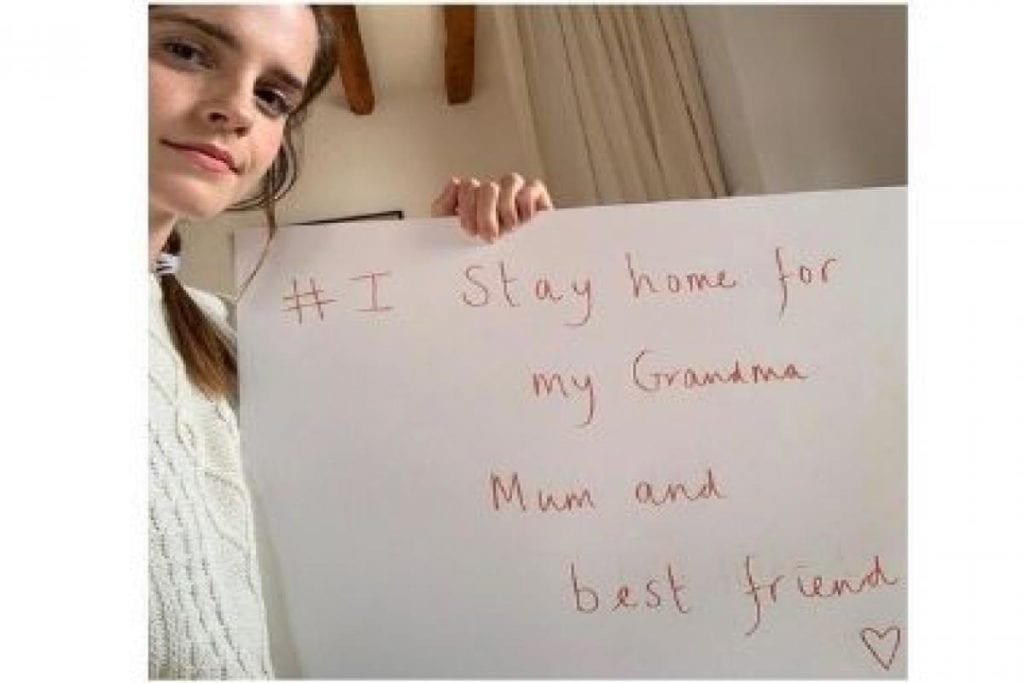 Γρήγορα λοιπόν το #IStayHomeFor challenge έγινε viral, με πολλούς διασήμους και μη να παίρνουν την σκυτάλη. Η Έμα Γουάτσον έστειλε το δικό της μήνυμα λέγοντας πως μένει σπίτι για την γιαγιά της, την μητέρα της και τον καλύτερο της φίλo. Συγκεκριμένα δήλωσε: «Η γιαγιά μου είναι άνω των 70 ετών, άρα ιδιαίτερα ευάλωτη… η μαμά μου έχει διαβήτη τύπου 1 και ο καλύτερος μου φίλος εργάζεται στην υγεία. Μένω σπίτι για εκείνους. Εσείς για ποιους μένετε σπίτι; Σας στέλνω την αγάπη μου».
