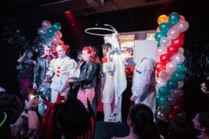 Υπήρχε μια Delorean παρκαρισμένη έξω από το TRES, υπήρχε booth της Kryolan όπου σε έφτιαχναν όσο πιο ghoul ή ζομπι ήθελες, υπήρχε photo booth, display με vintage 80s παιχνίδια και κομικ, διαγωνισμός καλύτερης στολής, break dance battles, αλλά κυρίως υπήρχε μια διάχυτη τρέλα και απίστευτη όρεξη στο κοινό να συμμετέχει σε αυτή την παράνοια.